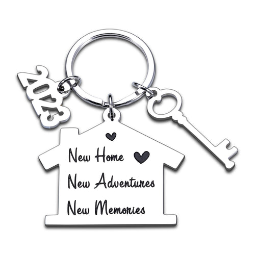 Housewarming Gifts for Women Men New Homeowners New Home Keychain 2023 New Home Gifts for Couple Friends Neighbors Moving in First Home Present from Real Estate Agent New Adventures New Memories Tag