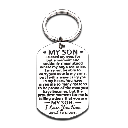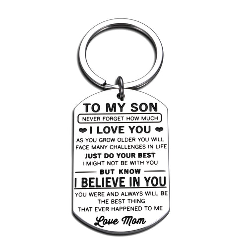 Inspirational Gifts to My Son Keychain from Mom Never Forget How Much I Love You Birthday Christmas Graduation Gift for Boys Teens Coming-of-age Back to School Pendant from Mother in Law Stepmother