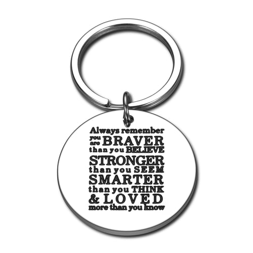 Inspirational-gift Positive Quotes Keychain Men Women Son Daughter Birthday Graduation Motivational Pendant Always Remember You Are Braver Than You Believe Unisex Accessories for Mom Dad Best Friends