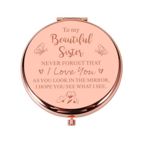 Sisters Gifts from Sister Rose Gold Compact Mirror Sister Christmas Gifts for Women Friends Sister in Law Stocking Stuffers for Teen Girls Birthday Graduation Valentines Day Sister Gifts from Brother