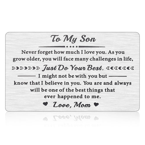 Son Gifts from Mom Wallet Card Insert Birthday Gift Card Teen Boy Gifts Christmas Gifts for Men Kids Graduation Gifts Valentines Day Gifts Off to College Back to School Stocking Stuffers for Teen Boys