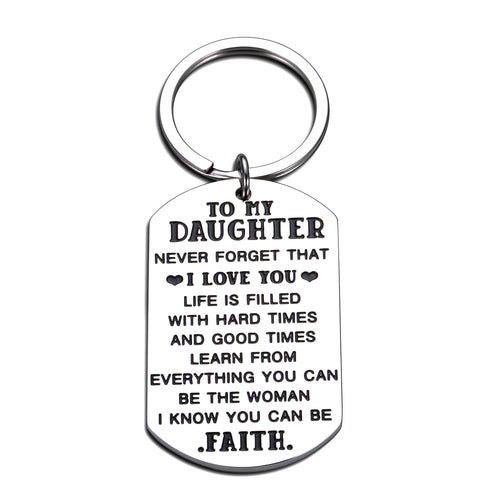 To My Daughter Gifts Keychain from Mom Dad Inspirational Key Ring for Teens Girls Birthday Christmas Pendant from Stepmother Stepfather Family Graduation New Year Present Charm for Women Her