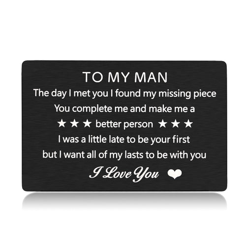 To My Man Wallet Insert Card I Love You Gifts for Boyfriend Husband Anniversary Birthday Gifts for Him from Girlfriend Wife Engagement Wedding Gift Card for Groom Fiance from Bride Fiancee